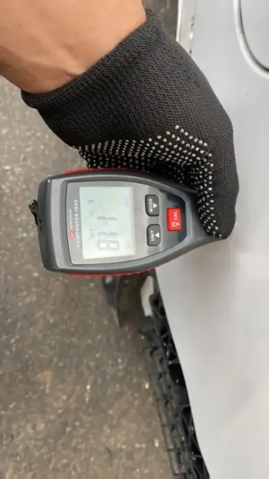 - Толщина ЛКП. Замер в 5 точках (верхняя стойка, арка, зона около фонаря, низ, центральная часть). Допуск Hyundai — 110-130 микрон.