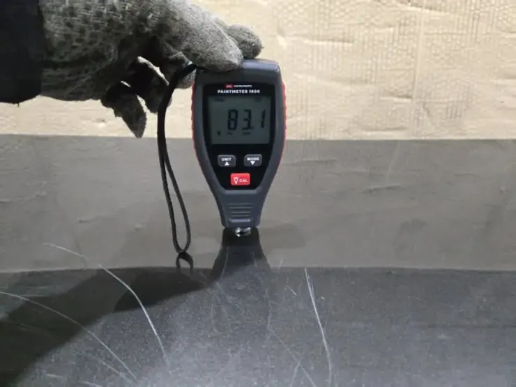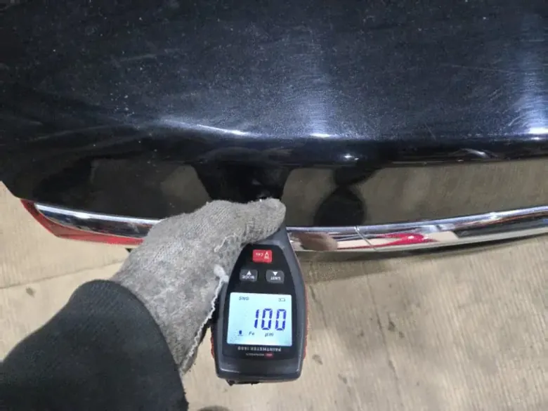 - Замер толщины ЛКП толщиномером. В пяти ключевых точках (центр, углы) показатель должен быть в диапазоне 100-130 микрон — это заводской допуск Mazda. Отклонение говорит о перекрасе.