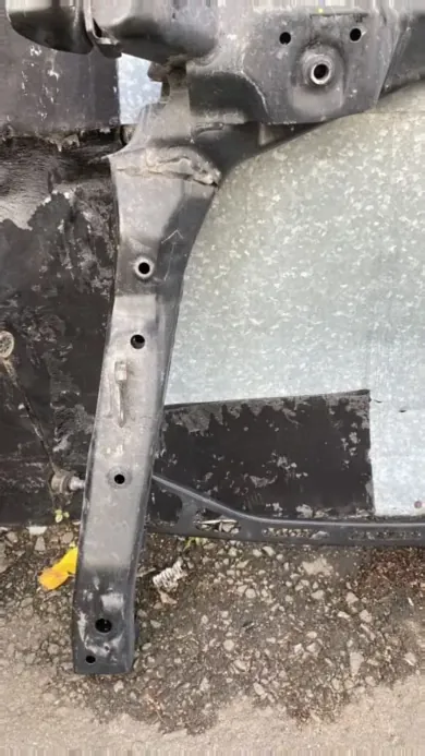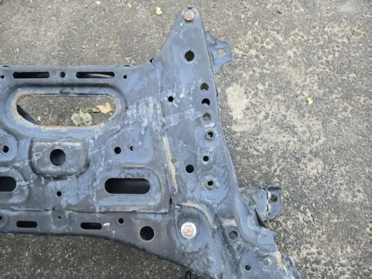 - Осмотр на предмет деформаций и ремонта. Особое внимание — к местам крепления двигателя, подушек и рычагов. Любые следы сварки, рихтовки или вытягивания являются причиной для отбраковки.